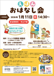 この一年は、地元のこども園や本屋さん、さらには「絵本ワールド in ひょうご2025」の大きいステージでもおはなし会をさせていただきました。昨年に比べてより多くの方に絵本の楽しさを知ってもらう機会に恵まれ、しあわせな年でした。